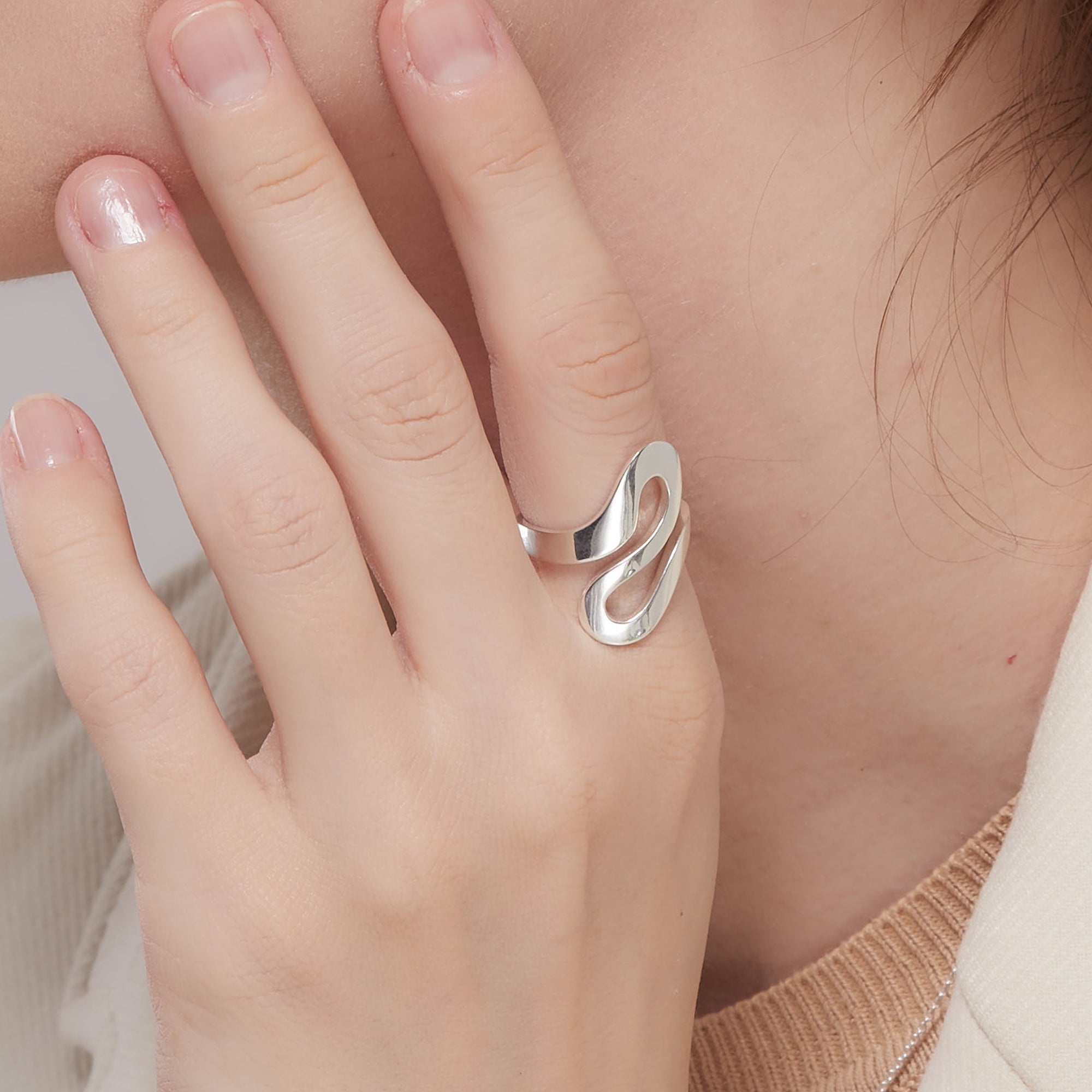 Inspired by natural water formations, this sculptural ring captures the essence of fluid movement in polished metal. The Sculpted Wave Ring features organic curves that flow seamlessly around the finger, creating depth and visual interest from every angle. Precision detailing highlights the craftsmanship, resulting in a piece that feels both modern and timeless.