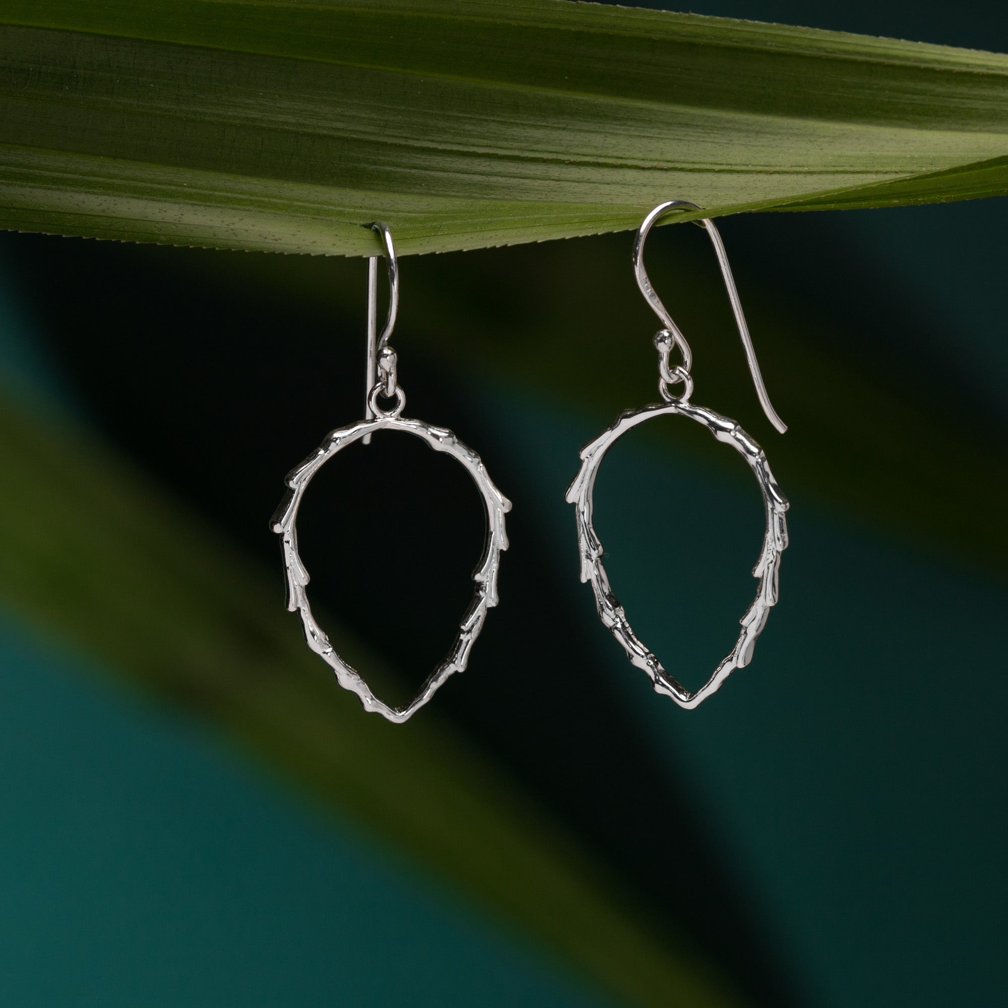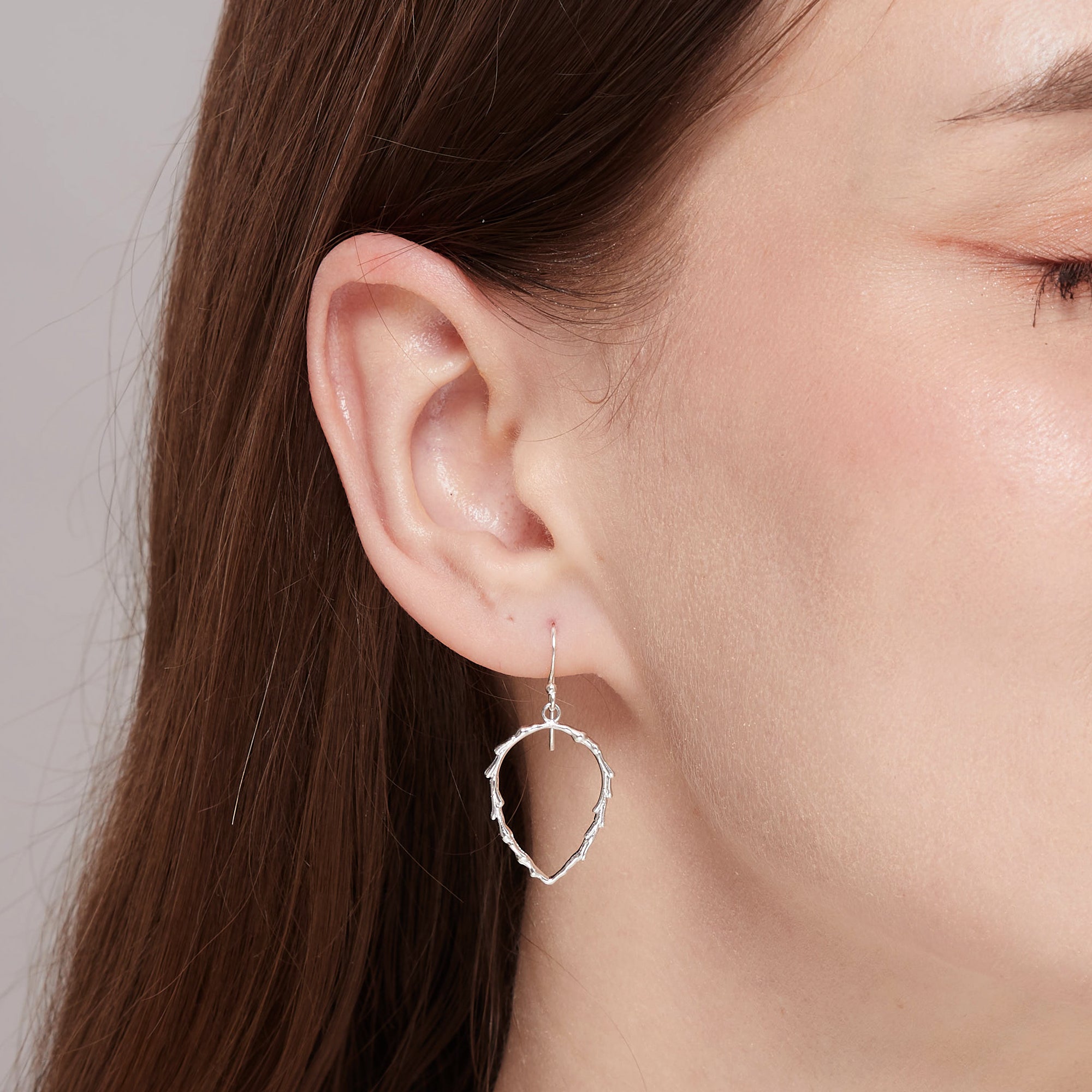 Delicate vine-inspired metalwork frames graceful teardrop forms in these sophisticated dangle earrings. Crafted from 925 sterling silver, the intricate botanical detailing adds dimensional artistry, while the elongated silhouette creates elegant movement with every wear. Designed for those who appreciate refined, nature-inspired jewelry, these earrings balance understated elegance with distinctive design. Perfect for elevating everyday looks or complementing special occasions with timeless appeal.