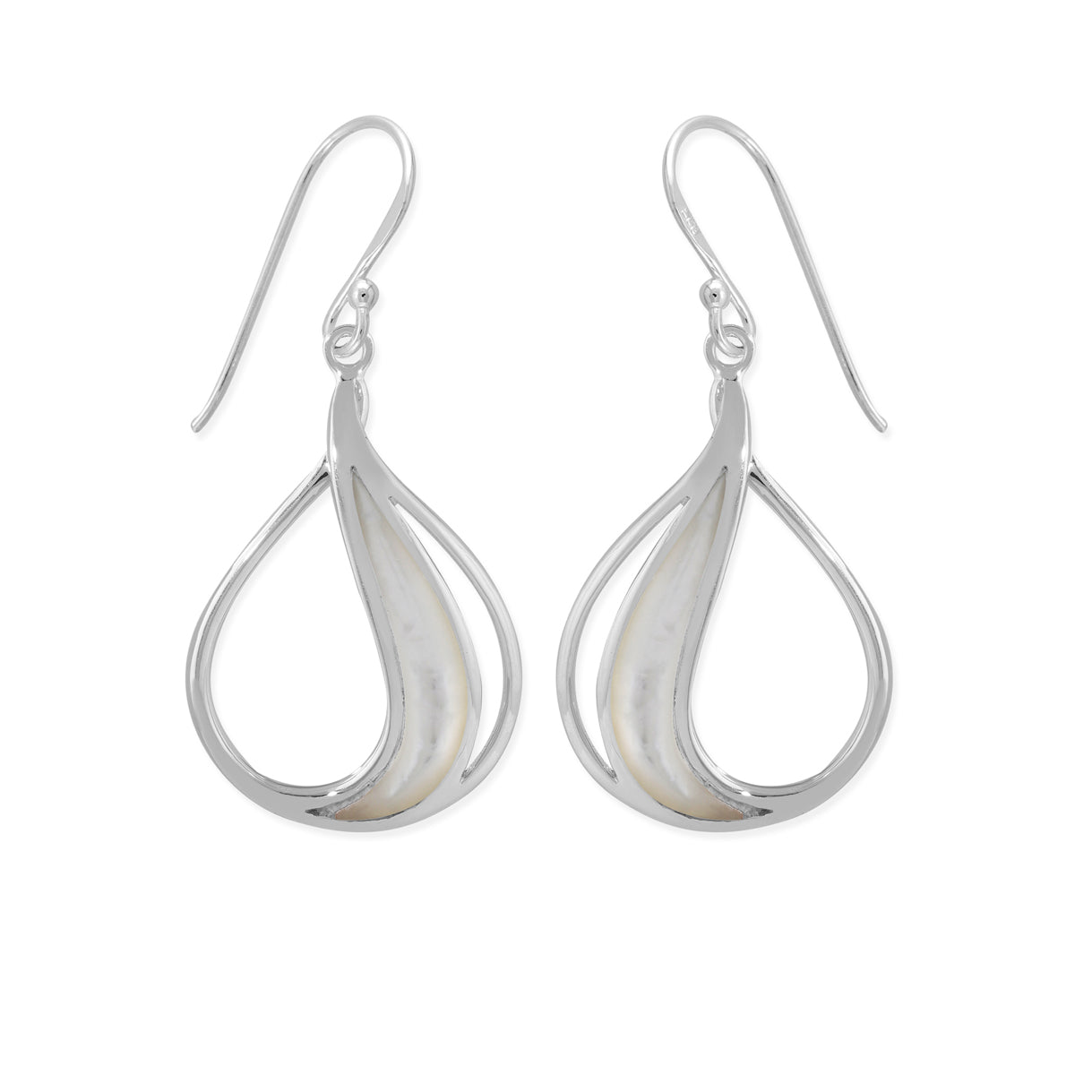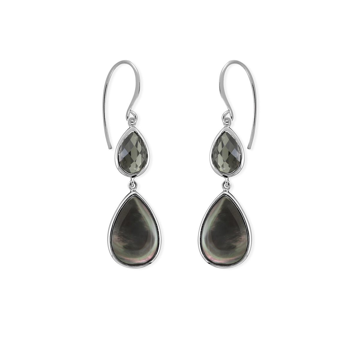 Boma Jewelry Earrings Black Mother of Pearl/Mother of Pearl Oval Shaped 2-Stone Mosaic Dangle Earrings