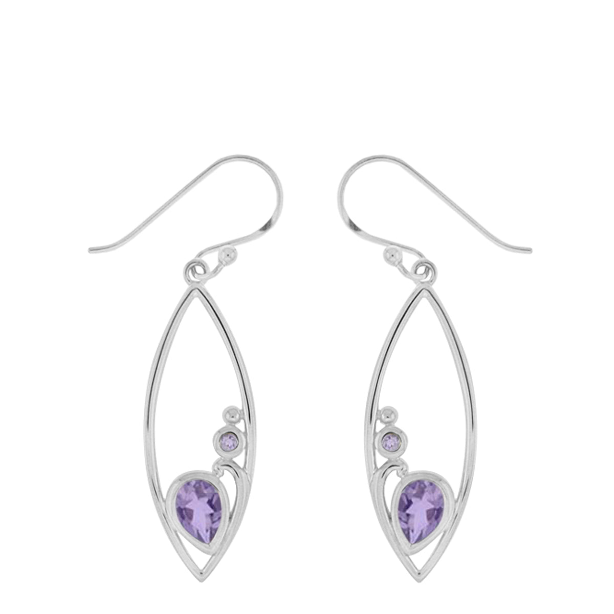 Boma Jewelry Earrings Purple Turquoise/Purple Mother of Pearl Oval Shaped 2-Stone Mosaic Dangle Earrings