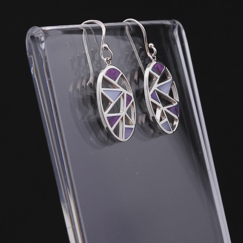 Boma Jewelry Earrings Purple Turquoise/Purple Mother of Pearl Oval Shaped 2-Stone Mosaic Dangle Earrings