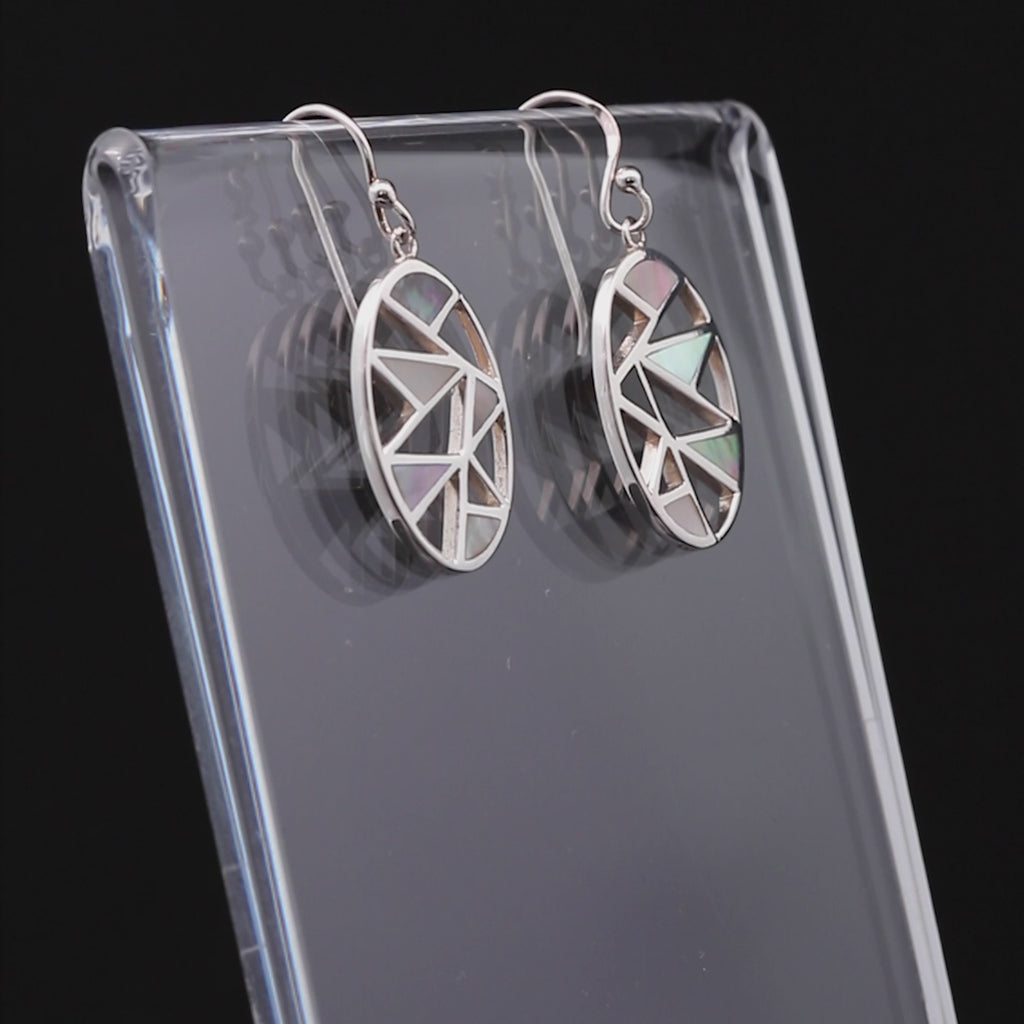 Oval Shaped 2-Stone Mosaic Dangle Earrings